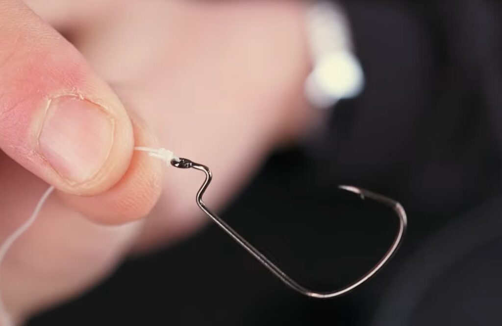Traditionally, a small swivel then connects the thicker leader to a section of thinner fluorocarbon leader (6-8lb), but many anglers now use a double uni knot instead, which eliminates extra hardware and keeps the rig sleek. This knot or a traditional swivel is more than enough to stop the tungsten bullet weight from sliding onto the thinner leader and keeping that all-important separation. Finally, choose a hook suited to your fishing style: a narrow Texas hook for dragging along the bottom, a wide-gape hook for active retrieves, or an open hook if you’re fishing a clean, snag-free area.